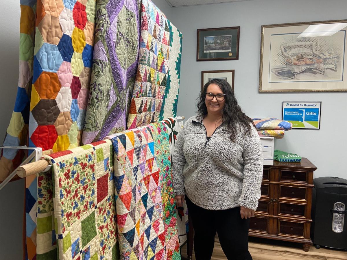 These beautiful quilts made by the Sandhills Quilters Guild are donated by the guild to Habitat for Humanity of the NC Sandhills. Each homeowner may select one of these colorful art objects for their new home. President Ellene Place brings the newest quilt on behalf of the group, which has been meeting monthly for years. They gather on the second Tuesday at Our Savior Lutheran Church. Other officers include Vice Presidents Judy Bartran, Teresa Numberg, Patti Cifelli And Leslie Rose; Secretaries Susan Wiener, Pat Hough, Jeanne McGrayne; and Treasurers Barbara Bennett and Janet Mulheron. For more information, check out their website: Sandhillsquiltersguild.org