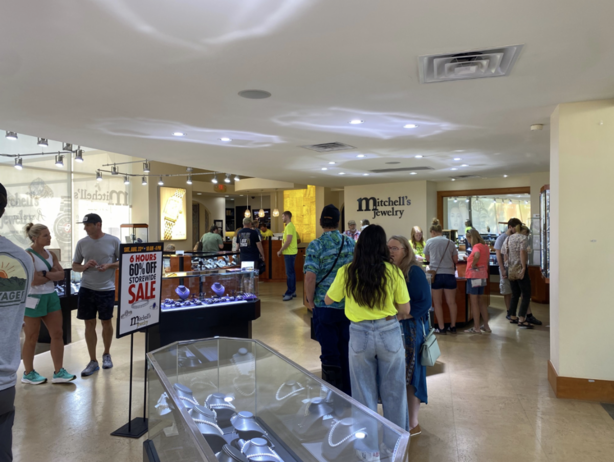 | | Fiscus Jewelers starts Saturday sales event with a store full of buying customers | |
