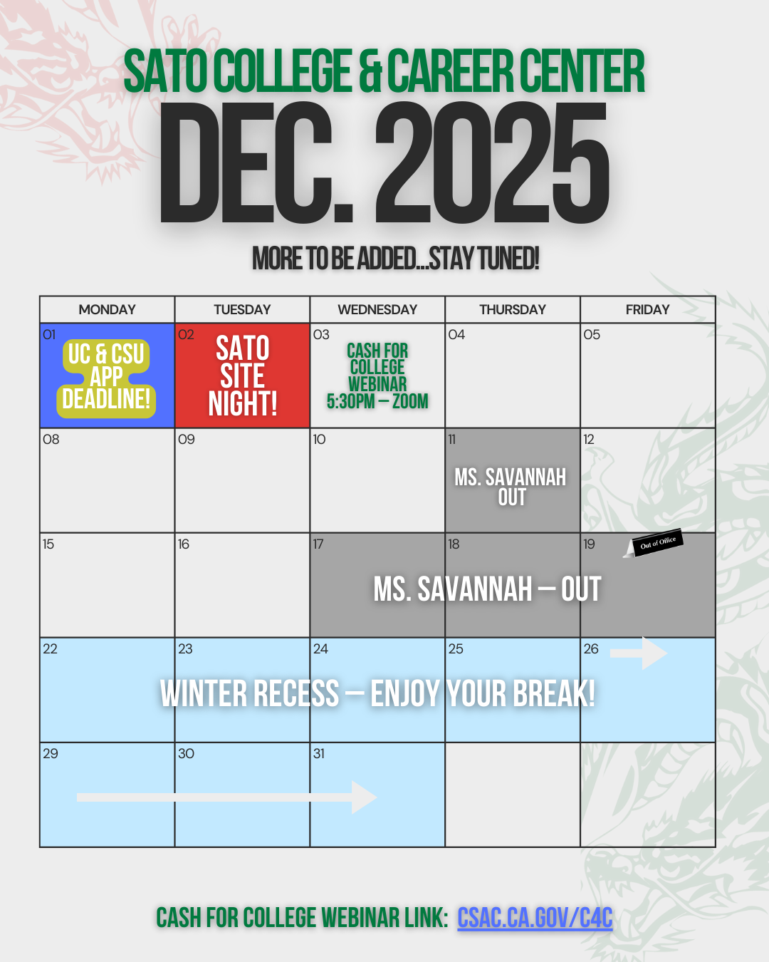 I am so grateful for all we have here at Sato, and am grateful for our amazing students. Have a wonderful Fall Break.