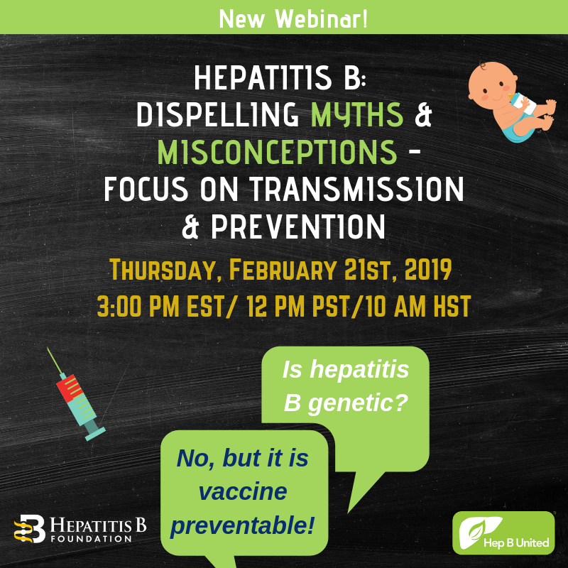 for a webinar on dispelling common myths about hepatitis B! How is hepatitis B spread? If I am infected, can I breastfeed my baby? What is the hepatitis B vaccine schedule? We will tackle some of these questions, myths about hepatitis B transmission, and how to address common misconceptions. Join a conversation with our panelists and share your own questions about hepatitis B transmission and prevention.
