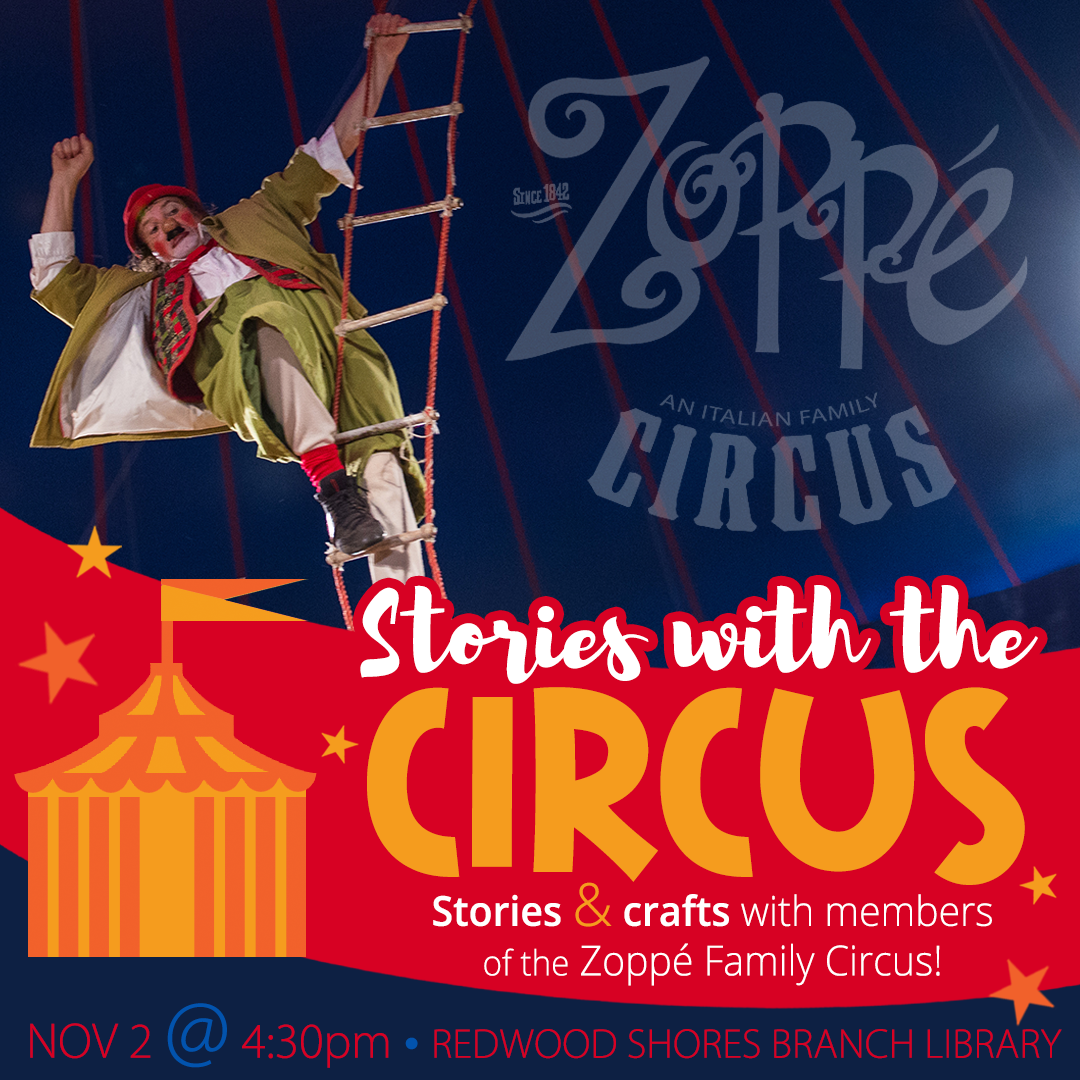Join us for Stories with the Circus: November 2 at Redwood Shores Branch Library followed by November 7, 14 & 21 at Downtown Library.