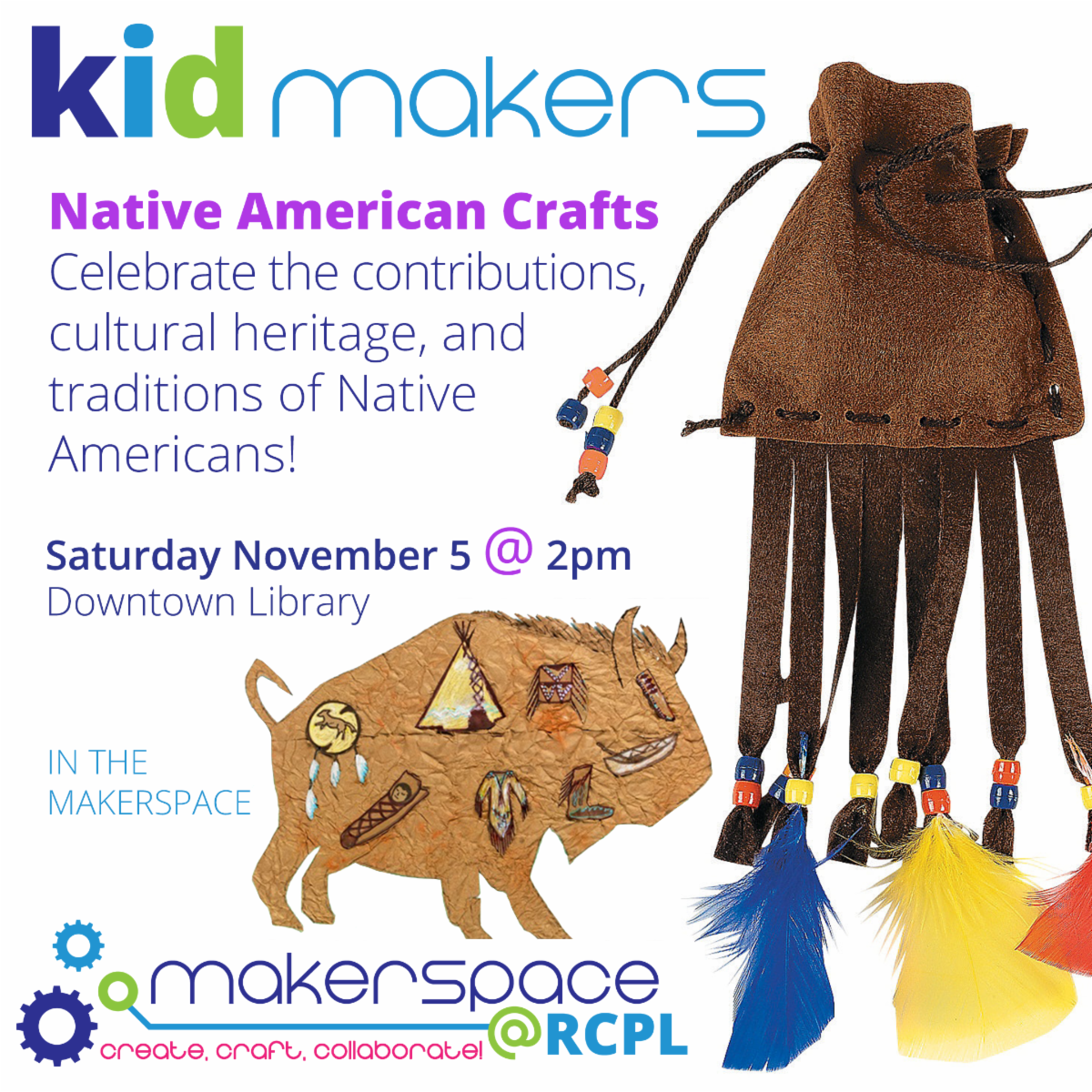 For Native American Heritage Month, join us for Kid Makers in the Makerspace and celebrate the contributions, cultural heritage and traditions of Native Americans.