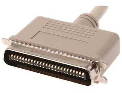 Back before Thunderbolt, Lightning, USB, FireWire, and a host of other obsolete connectivity protocols, there was one that older computers used, as illustrated on the right. You were able to daisy chain them (up to seven devices) and often needed a “terminator’ at the end of the chain.