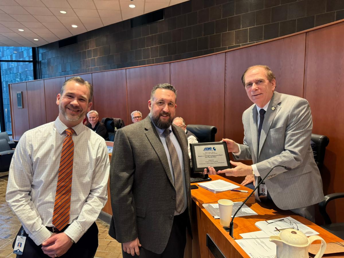 Brent McQueen, Engineering Division Manager, and Michael Hall, Director of Engineering and Public Works were presented a plaque at the April 9 Village Board meeting. The village prides itself in providing exceptional, first-rate service to residents, business owners and visitors. To read about other awards and accolades given to the village, visit the website. For information on upcoming construction projects, view the Construction Dashboard.