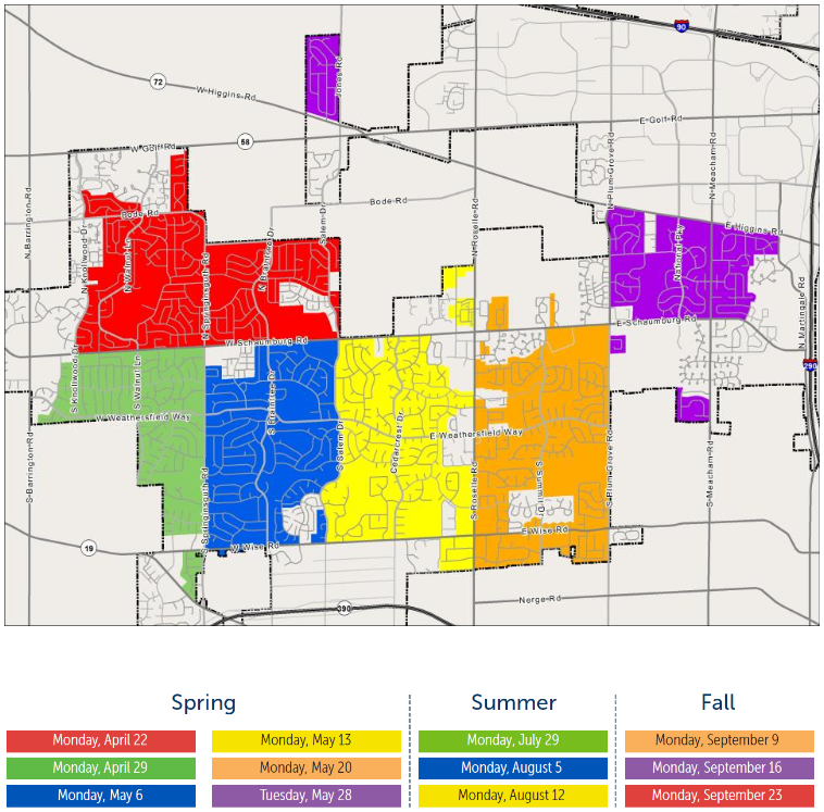 Residents are asked to follow the collection schedule shown above and listed on the village’s website. No appointments are necessary. This program is open to single-family residences only; contractor-generated brush will not be collected.