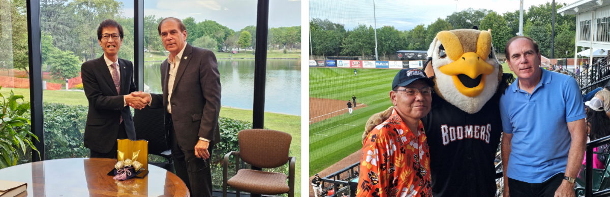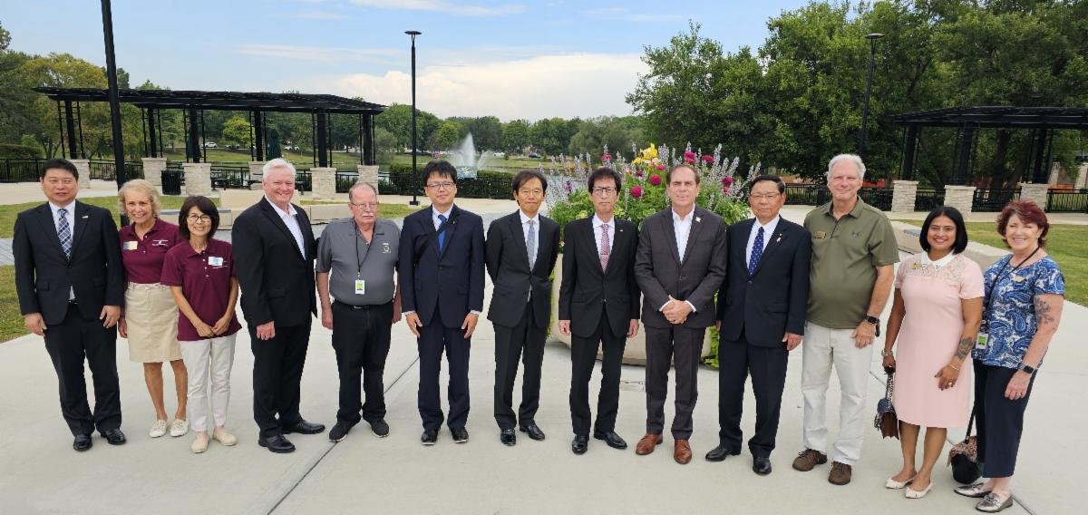 This week, the Village of Schaumburg welcomed visitors from Namerikawa, Japan as part of the Sister Cities Program. During their visit, Mayor Tatsuo Mizunotero and three delegates of Namerikawa met with the village's elected officials, learned about Schaumburg's economic development, toured the Schaumburg Regional Airport, enjoyed lunch at the Schweikher House, and ended their visit at a Schaumburg Boomers Baseball game at Wintrust Field. The group also toured partner facilities, like the newly renovated Schaumburg Township District Library, Heritage Farm at Spring Valley, and the Schaumburg Park District Sport Center.