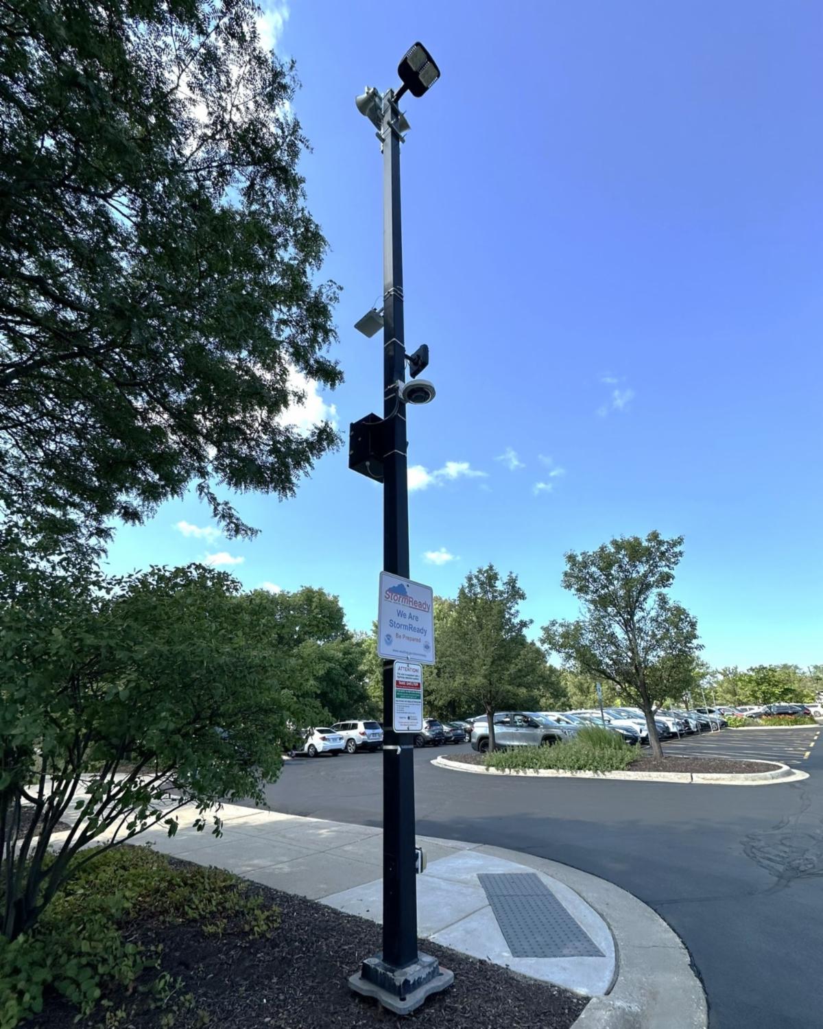 There are also more than 40 lightning detectors in Schaumburg, most of them located on Schaumburg Park District properties such as parks, golf courses and swimming pools. From spring through fall, between 7 a.m. and 11 p.m., the alarms sound when there is lightning within 10 miles. The warning consists of one long 60-second siren and flashing lights. After conditions are determined safe, the siren will sound three, 5-second blasts and the flashing light will turn off, indicating it is safe to resume outdoor activity. The Village of Schaumburg has lighting detectors on the grounds of the Robert O. Atcher Municipal Center, 101 Schaumburg Court, and in the Town Square Plaza to provide additional safety to the public.
