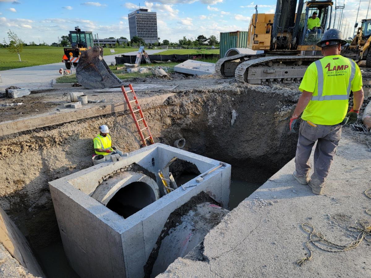 Construction of the Shared Street located along the west side of the 90 North District Park from Progress Parkway to Landmark Avenue began earlier this spring. Work has continued on the project with rough grading of the new road recently completed. The water main installation is about 80 percent complete and the storm sewer about 90 percent complete. Electrical system installations are anticipated to begin, and concrete work is scheduled to begin the last week of June. The project is expected to continue through the fall.
