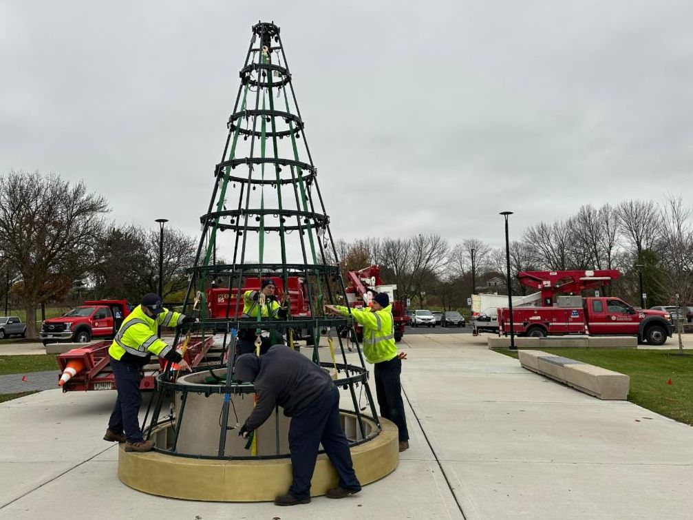 The Engineering and Public Works Department (EPW) is working diligently to assemble the 22-foot tree, sit-in sleigh, decorative frame, and the various other holiday decorations ahead of the Tree Lighting Ceremony taking place at 6 p.m. Friday, Nov. 29 at the Al Larson Prairie Center for the Arts, 201 Schaumburg Ct. We invite you to visit the Jack Siegel Memorial Plaza, located between the Prairie Center and the Municipal Center, in the upcoming weeks to view the lights and take advantage of the plentiful photo opportunities.