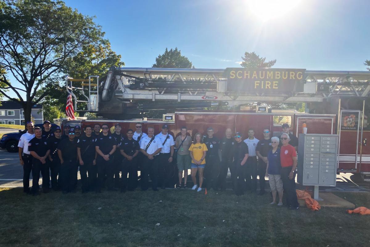 On Sept. 21, members of the Schaumburg Fire Department were joined by volunteers from the Rotary Club of Schaumburg-Hoffman Estates and the Schaumburg Medical Reserve Corps for a home safety visit day at the Nantucket Cove subdivision. Crews were able to complete safety visits in 29 homes, installing 39 smoke alarms and 22 carbon monoxide detectors. Smoke alarms were provided by Camp I Am Me, and carbon monoxide detectors were provided by the Rotary Club of Schaumburg-Hoffman Estates. To learn more about fire prevention and safety, please visit the website.