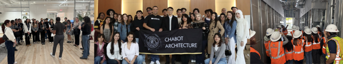 - Multiple university and firm tours coordinated by Chabot Architecture Student Officers and led by Prof. Adrian Huang, including visits to Cal Poly SLO, UC Berkeley, UC San Diego, University of San Diego, San Diego State University, New School of Architecture, HOK Architects, Gensler, and SOM