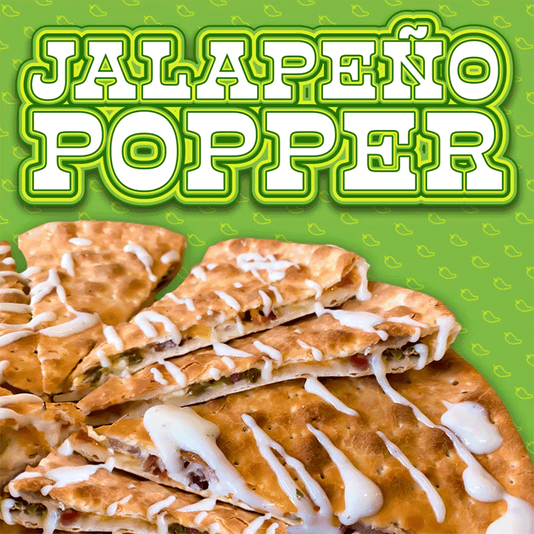 Cream cheese, jalapeño, bacon, cheddar, and mozzarella between two Crispy Thin Crusts and drizzled with ranch dressing