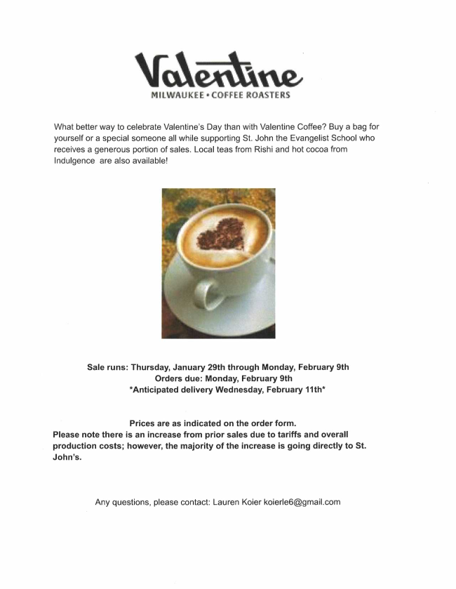 Please be sure to return your completed order form and payment by January 30th. If paying by check, make it payable to St. John the Evangelist.