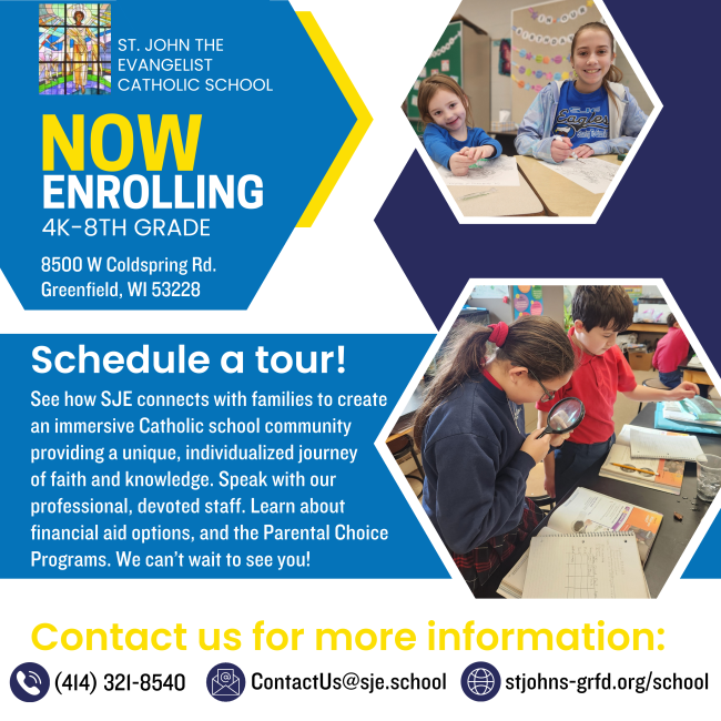 If you have any questions, please contact the school office. Thank you for choosing SJE for your family.