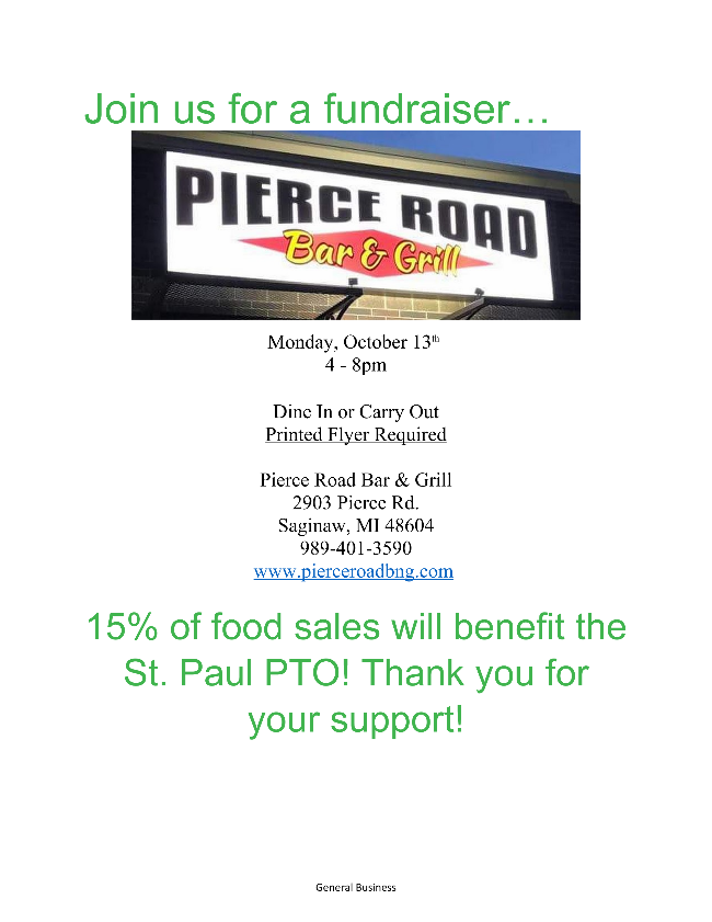PTO Fundraiser at Pierce Road Bar & Grill (flyer sent home today)