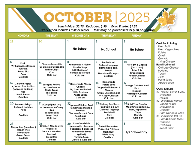Mrs. Sue Headings our Head Cook at St. Paul Lutheran School would like to invite St. Paul Church Members to consider the “Adopt Our Cold Bar Program”. Church members can learn more about the “Adopt our Cold Bar Program” in the brochure located near the ramp of the Ministry Center or by clicking here.