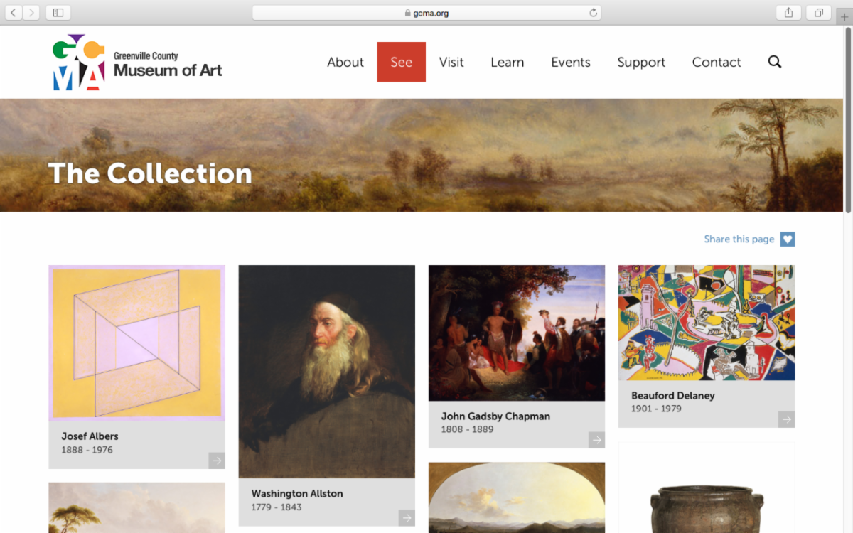 Currently, I am working with the Greenville County Museum of Art to access digital copies of their permanent collection. Students view one work at a time and respond to the piece's subject, composition, and content using a Google Form. After students have the opportunity to complete the Google Form, I meet with the class using WebEx for a virtual discussion about the artwork. Ellen Westkaemper at the GCMA sent information about the artists of the works for me to share with my students. My goal is to assure students practice using visual art terminology and develop their visual literacy.
