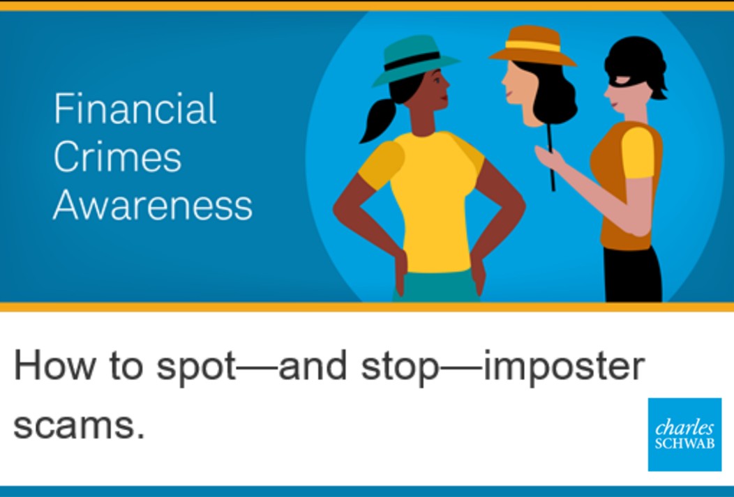 Charles Schwab recently sent out an email regarding ways to spot and stop imposter scams. We certainly can’t stress enough about protecting yourself from scams, so we wanted to pass along this good information.