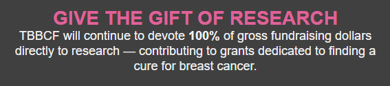 "The TBBCF was thrilled that we received 28 grant proposals this year from outstanding applicants from some of the most noted institutions in the Northeast including Dana-Farber, Memorial Sloan-Kettering, Harvard Medical School and Yale. These proposals covered the gamut of cutting-edge breast cancer research.
