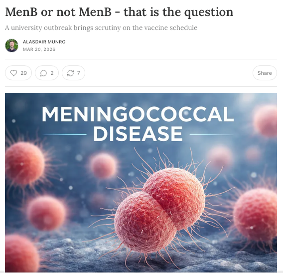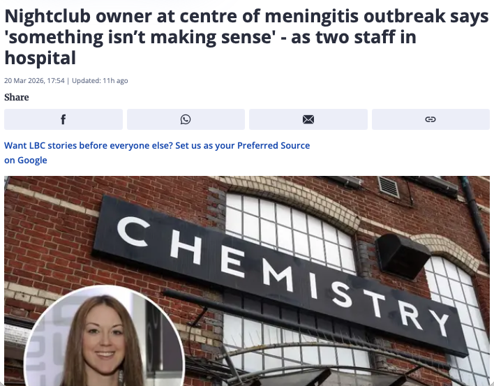 Then something happens. A meningitis outbreak, a new infectious threat.