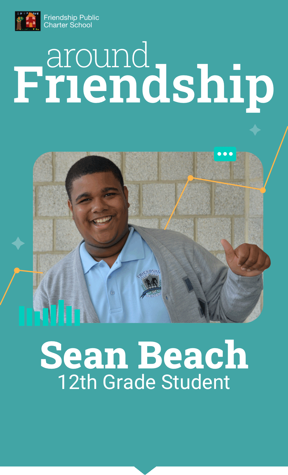 I’ve been at Friendship since kindergarten, so that’s thirteen years. It's been a long time. I like the culture we cultivate; it’s very family-oriented. Our siblings and cousins go to Southeast. We’re offered so many opportunities here. One of the things that I love about Friendship is how the staff and students support each other. I have done several things outside of Friendship such as preaching my first sermon and it was great to have the Tech Prep family there to support me. I love that we have two exceptional schools in Southeast D.C. We show that great things come from Southeast D.C.! Having so many black teachers is another great advantage.