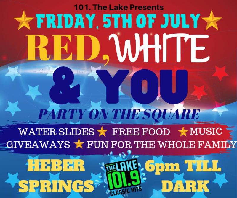 Free Community Event with free food, water slides, a DJ, and giveaways! It’s a Party on The Square in Downtown Heber Springs!