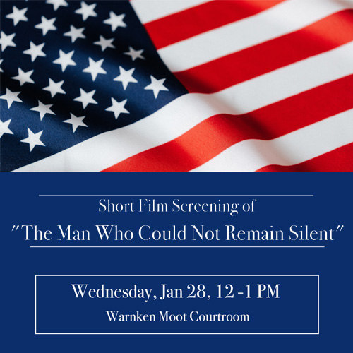 Join us on Wednesday, January 28, 2026, at 12:00. p.m. for a screening and panel talk of the 2024 Oscar-nominated and Palme d'Or-winning short film, "The Man Who Could Not Remain Silent."