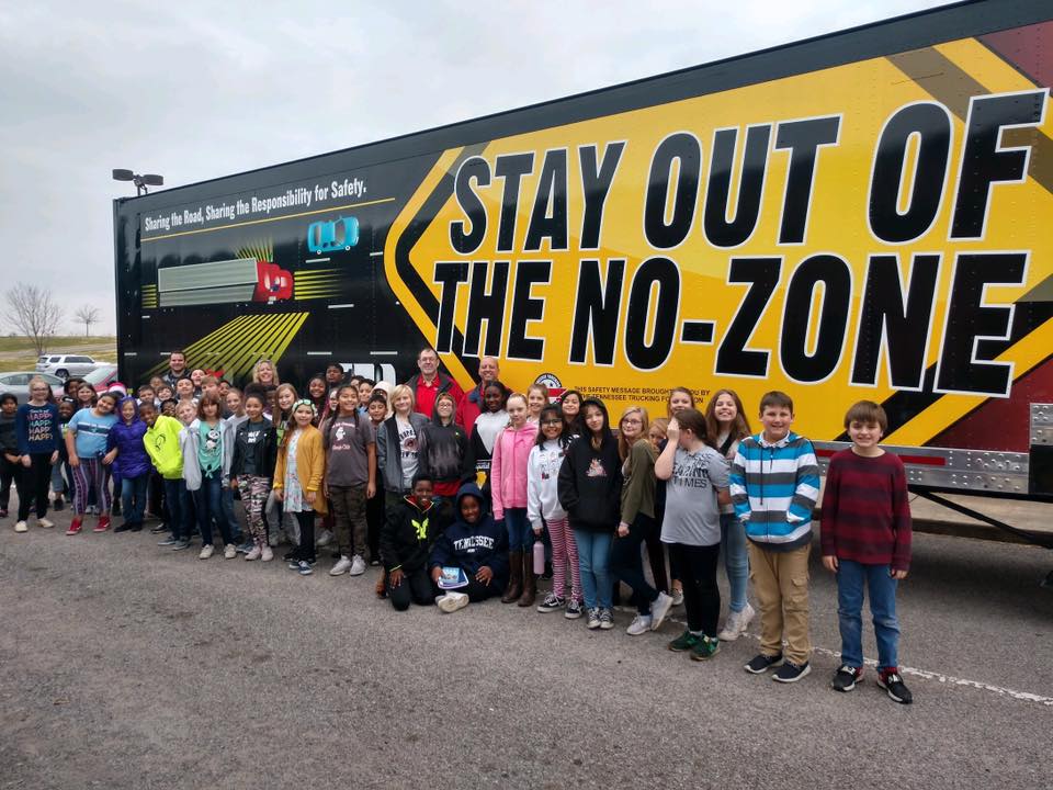Tennessee Road Team Captains and long time Titan drivers, Robert Moxley and Steve Bowar, with students at Benny Bills Elementary in Gallatin, TN. They spent time with the 3rd, 4th, and 5th grade classes talking to them about the importance of the trucking industry and teaching them about the No Zone