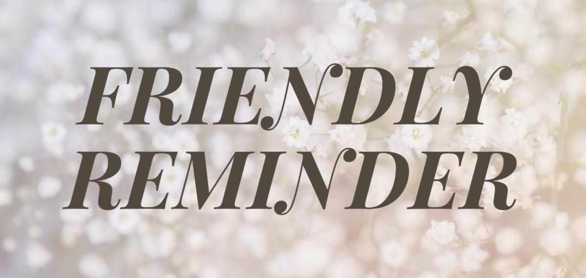 Just a friendly reminder that even though we are not in the office, we are still working from home and our regular working hours are Monday through Thursday, 9 a.m. to 4 p.m.