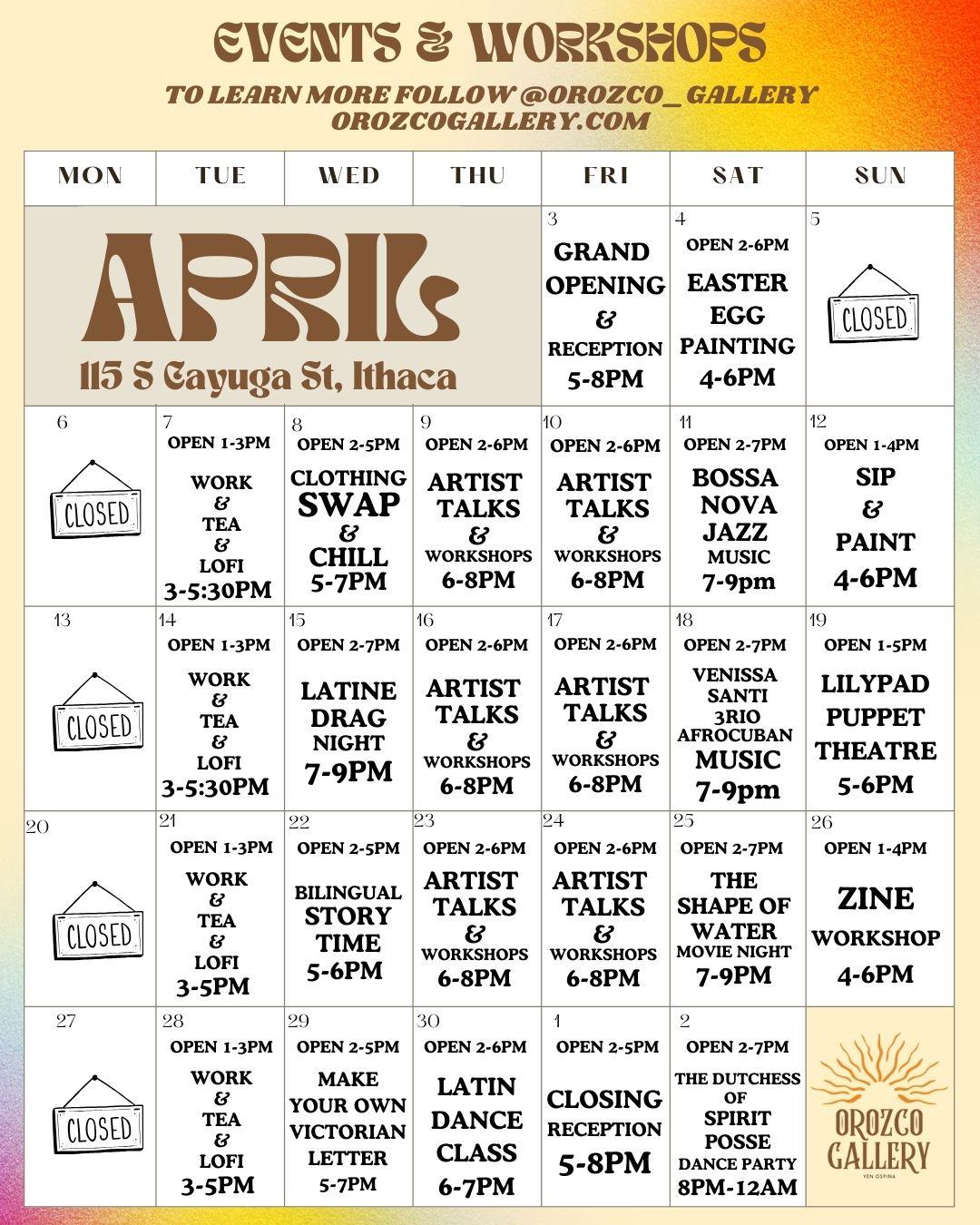 Orozco Gallery will open its doors for the second year as a vibrant pop-up space dedicated to creativity, connection, and cultural celebration. Throughout the month, the gallery will feature artist talks, live music, dance performances, workshops, film screenings, and family-friendly gatherings, inviting community members of all ages to participate in a welcoming, sober environment. Many events are free or offered on a sliding scale to ensure accessibility. Select programs require RSVP.