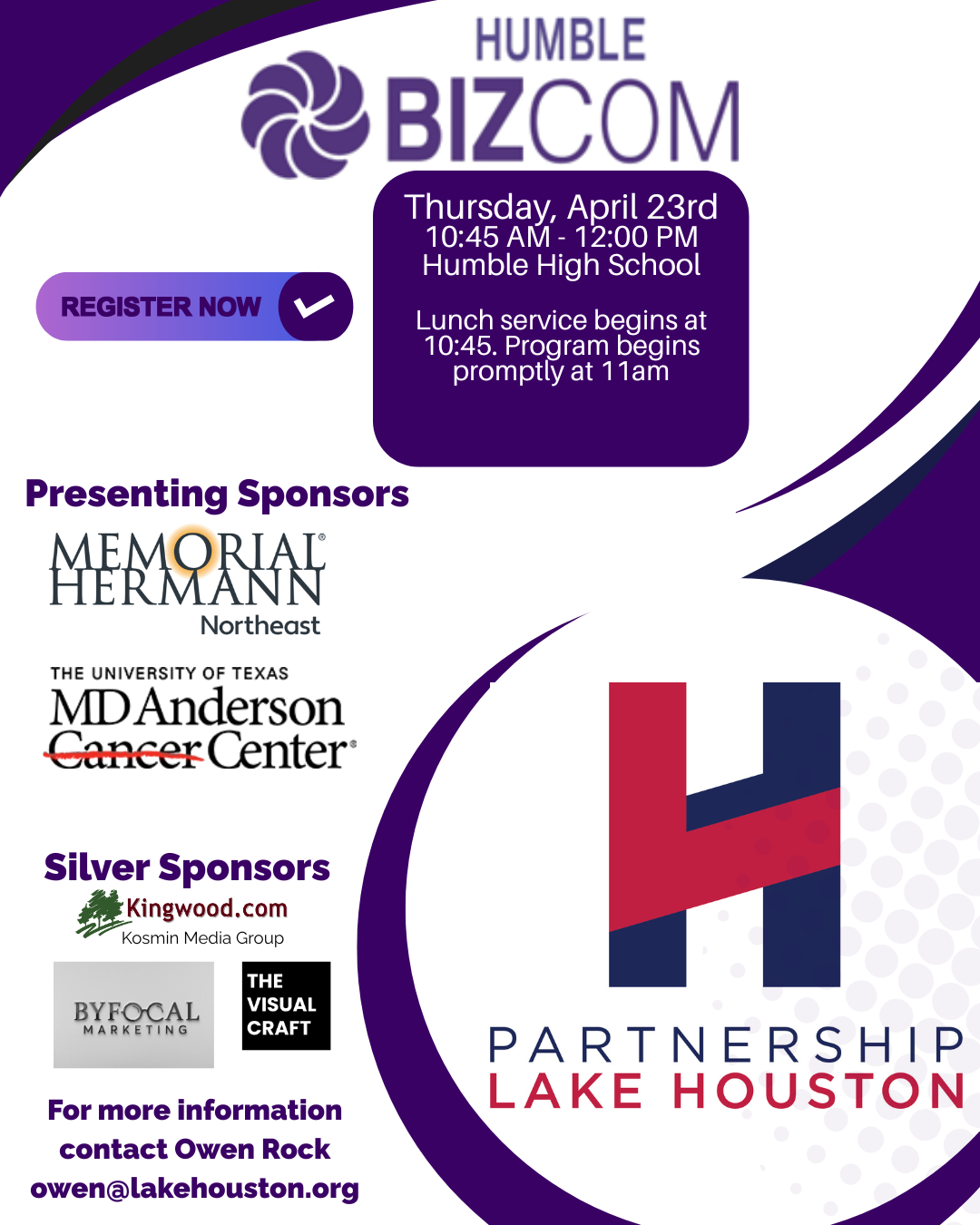 Sponsorship opportunities are also available! Showcase your business while supporting the nonprofit organizations that make a difference in the Lake Houston area. For more sponsorship information contact Shannon at smagree@lakehouston.org