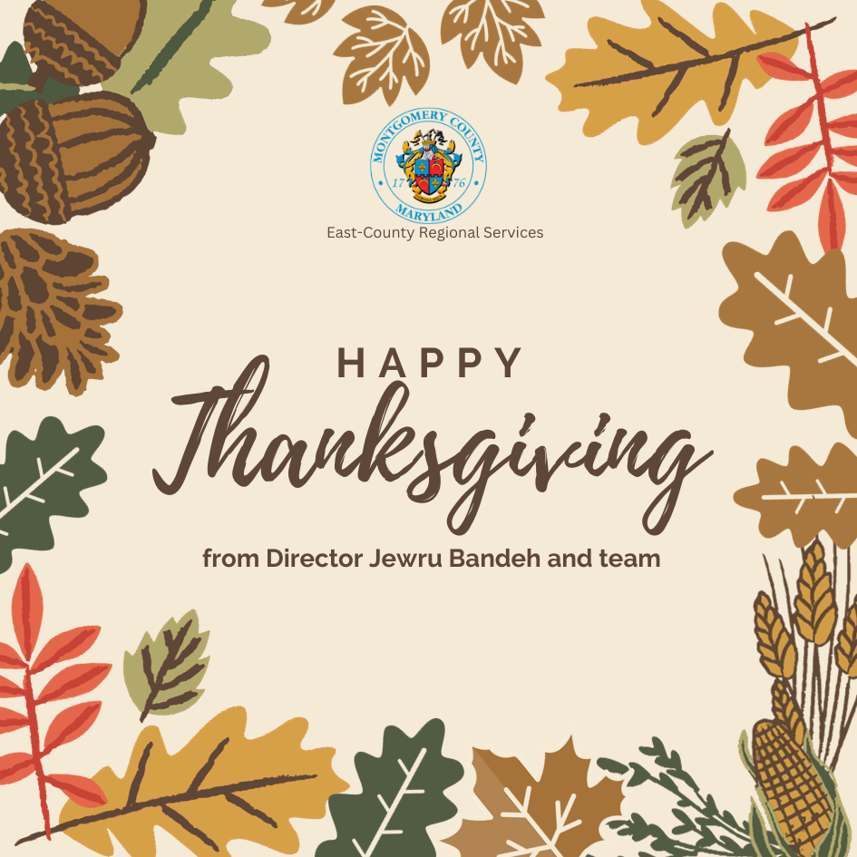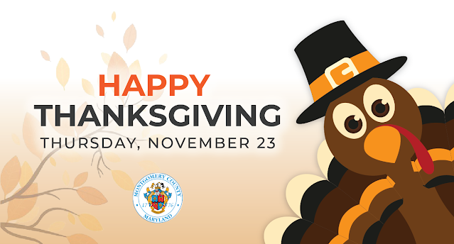 Montgomery County Schedule for Thanksgiving Weekend on Thursday-Friday, Nov. 23-24 | The Montgomery County Government, and programs that impact County residents, will have schedule and program changes for Thanksgiving Weekend, Thursday-Friday, Nov. 23-24. Read more. | |