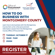 The Montgomery County Office of Procurement and the Maryland Women's Business Center will co-host a quarterly webinar on the 3rd Tuesday of October, January, April and July from 10:00am - 11:00am.