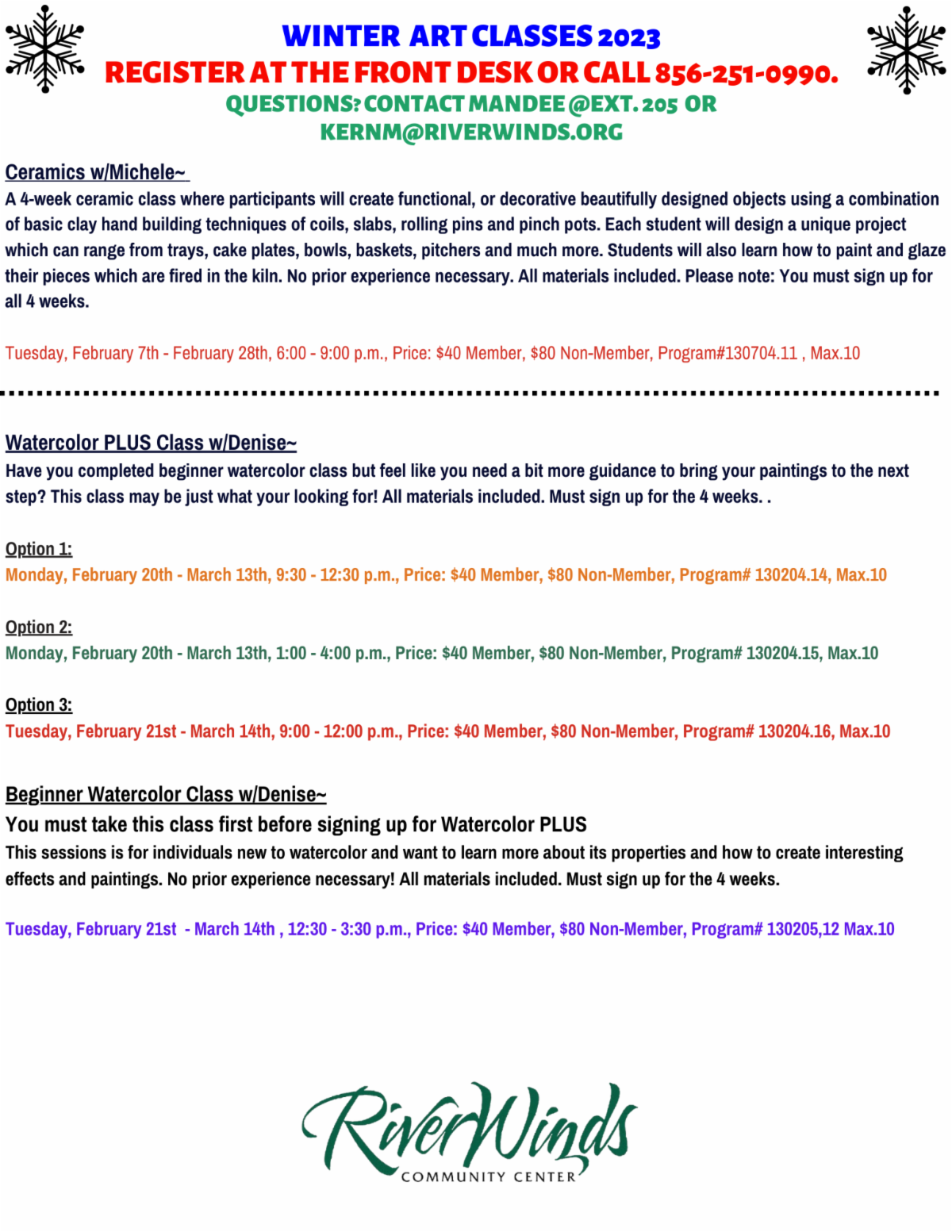 Winter Art Classes for Adults!