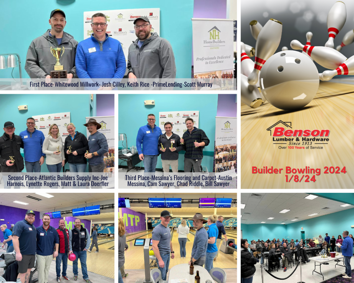 60+ members and friends met on Monday, January 8th at Ten Pin Bowling Center in Merrimack for some friendly competition and fun. They enjoyed all you can eat pizza and great networking with area building professionals and a 50/50 raffle. Many thanks to all who participated, this is always a crowd favorite and sell out!!
