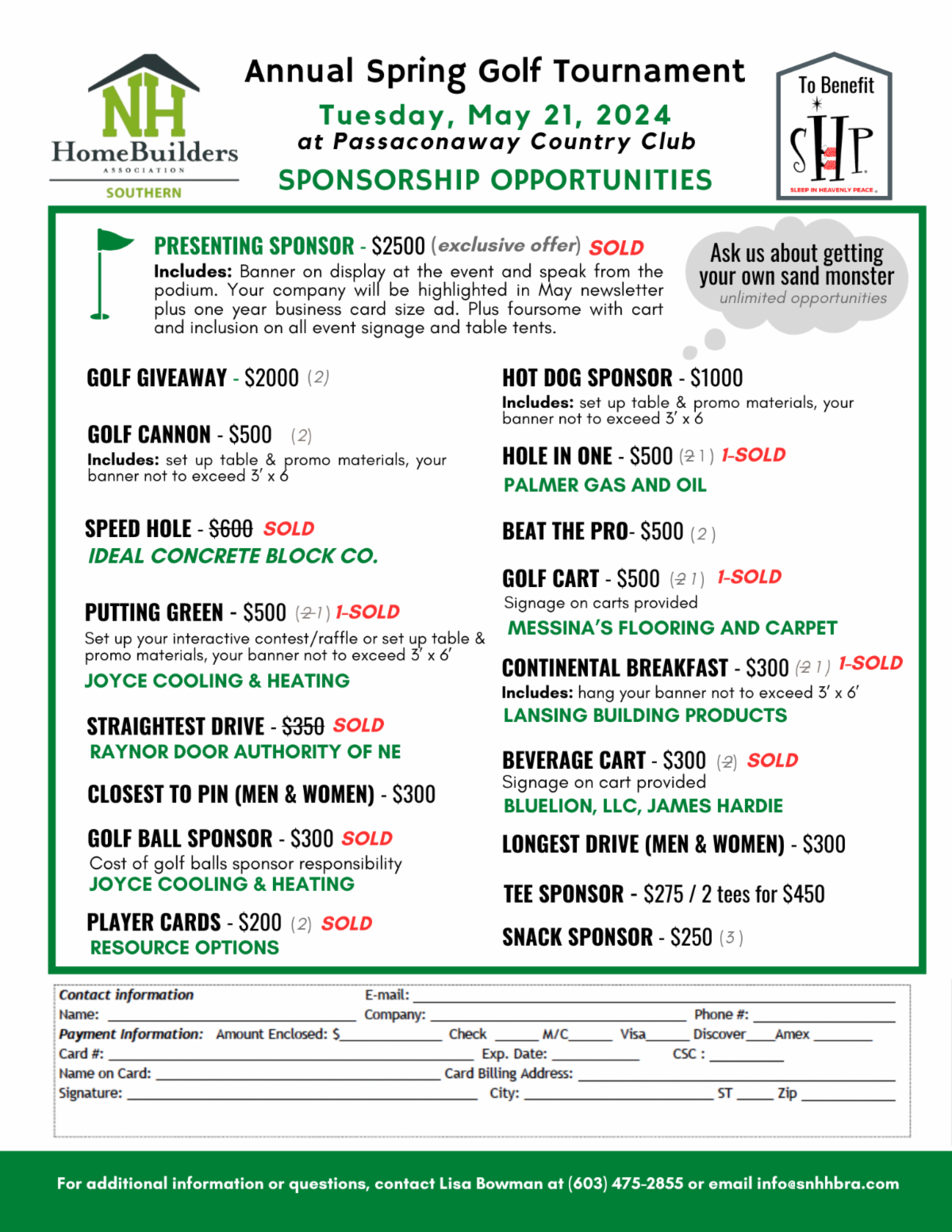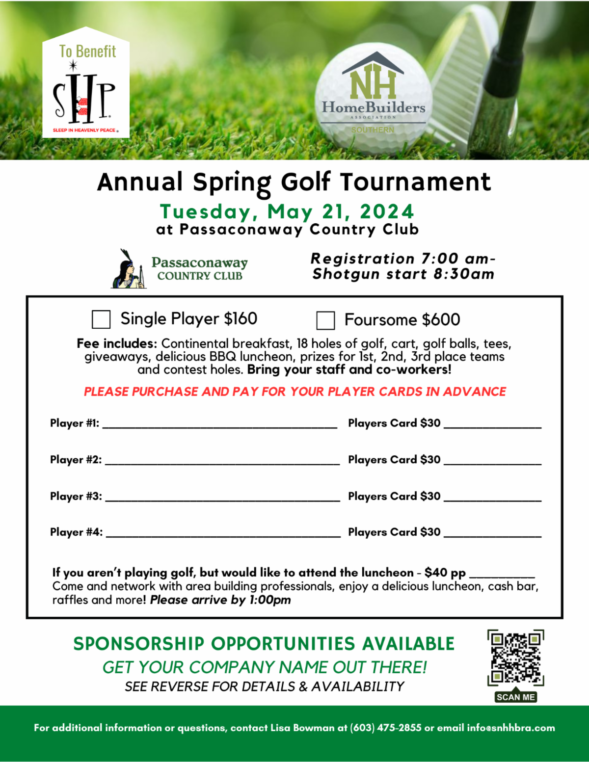 And it wouldn’t be Spring without a little bit of Golf!! My favorite four letter word. Reminds me of the old Robin Williams skit on golf. You Tube it. We will have our Spring Golf Tournament this year at Passaconaway Country Club in Litchfield on May 21st. It’s a morning shotgun start. What more can I say? This is just an awesome day on the links. The Golf Committee is hard at working recruiting you and me to play and sponsor! I hope you’ll mark the day off on your calendar and come enjoy some great golf and fellowship at a beautiful golf course.