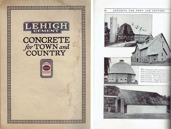 [Concrete & Cement]. Lehigh Portland Cement Company. Lehigh Cement, Concrete for Town and Country A Service Book of Information for Those Interested in Permanent Improvement in Town and Country. Philadelphia, PA: Wm. F. Fell Co., 1922. First edition. Quarto, pp 189, illustrated with b/w photographs, construction drawings and diagrams. Decorated Wraps. Very Good, mild water stain on front cover.