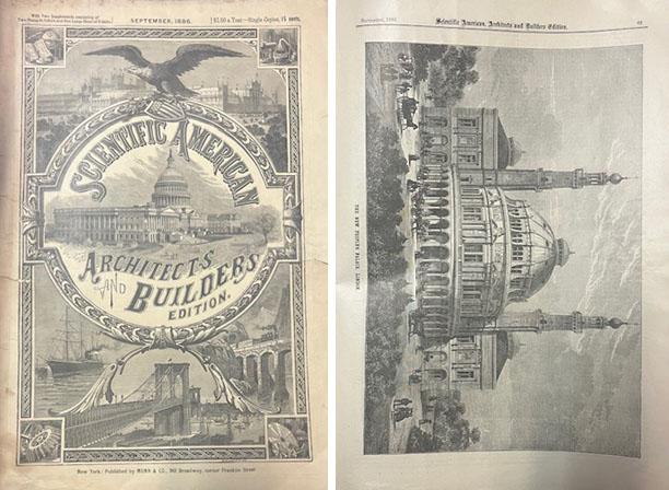 Two beautifully rendered pages of architectural sketches, worthy of framing. (23572) $45.00