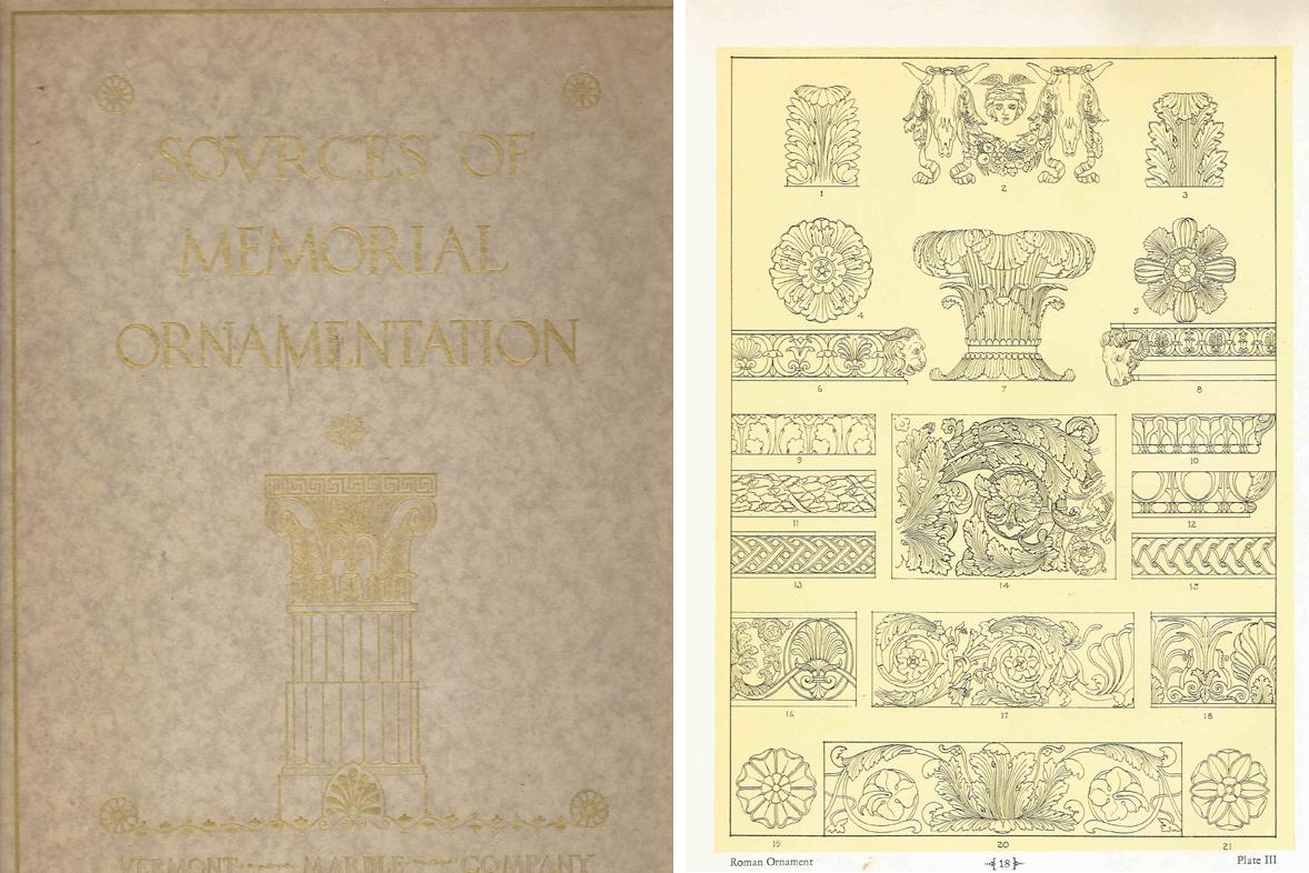 An interesting and attractively illustrated outline of historical ornaments and motifs as related to memorial design. Includes sections on Egyptian, Greek, Roman, Celtic, Gothic, Renaissance, and Colonial ornament, each with a full page plate of examples. A useful and interesting resource on an under-appreciated subject. (20464) $65.00