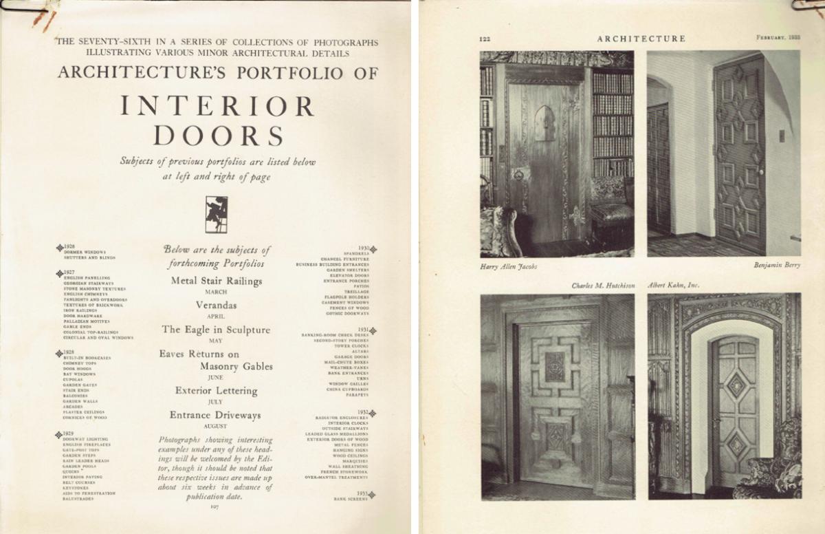 Articles include sculpture and the pediment (interviews with sculptors by a member of the editorial staff); Indo-Hispanic Mexico; measured drawings of YMCA (a fold-out presentation that is in excellent condition); the Parthenon by moonlight; Friends' Meeting House in Poughkeepsie; First Presbyterian Church in Passaic, NJ; Marland Oil Company offices, Ponca City, OK; Oakwood Village High School in Dayton, OH; Amsterdam bridges and new houses; a review of the annual landscape gardening exhibition in NY; a Los Angeles home, and a photographic portfolio of gate-post tops, laced with many attractive period advertisements. In very nice condition for its age. (20460) $45.00