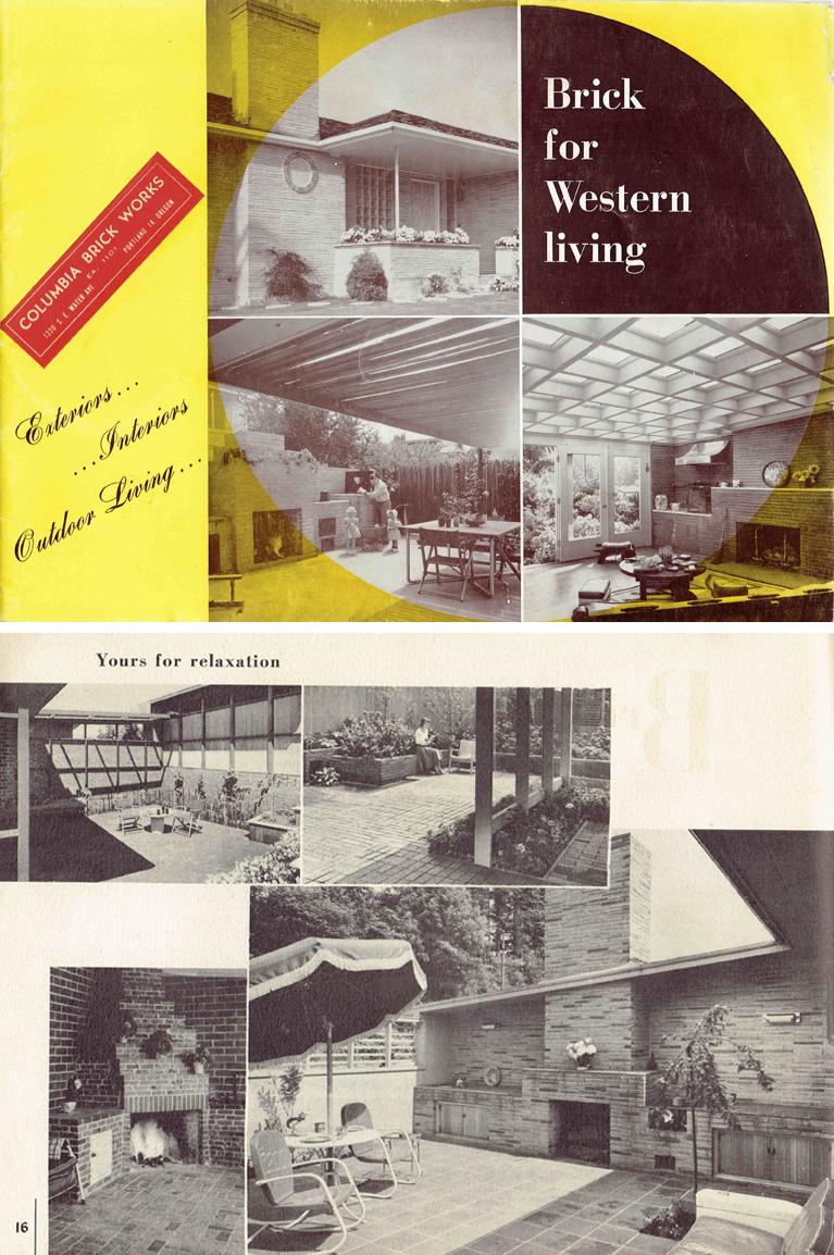 This company firmly believed in the old adage "one picture is worth a thousand words" ... they packed this slim volume with photos emphasizing beautiful architectural designs and decorative patterns that are possible when brick is used as a building material. The photos were taken by Leonard Delano, Philip Fein, and Charles Pearson for Sunset Magazine. (20447) $60.00