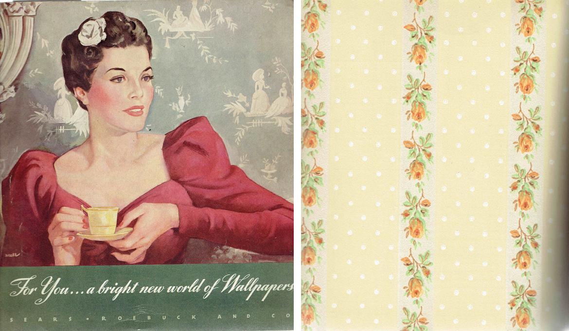 [Wallpaper]. Sears Roebuck & Co. For You . . . a bright new world of wallpapers. Chicago: Sears Roebuck & Co., 1939. First printing. Square quarto, pp. 89, 80 wallpaper samples, small pasted-in folder, halftones of patterns, interiors . Original Printed Wraps. Very Good, minor water damage to top right corners.