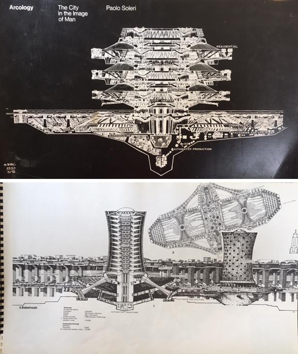 [Urban Studies]. Soleri, Paolo. Arcology: The City in the Image of Man. Cambridge, MA: MIT Press, 1969. First edition. Folio (24" x 14"), pp. 136, illustrated with b/w drawings. Ex-library markings. Plastic comb binding. Good; cover detached.