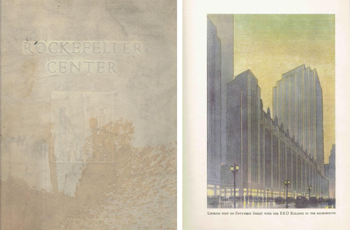 [Americana]. Rockefeller Center, Inc. Rockefeller Center. New York: Rockefeller Center, Inc., 1932. First edition. Folio (10.5" x 13.5"), pp. 39, illustrated with b/w and color drawings. Decorated Boards in Mylar Jacket. Very Good, but soiled cover.