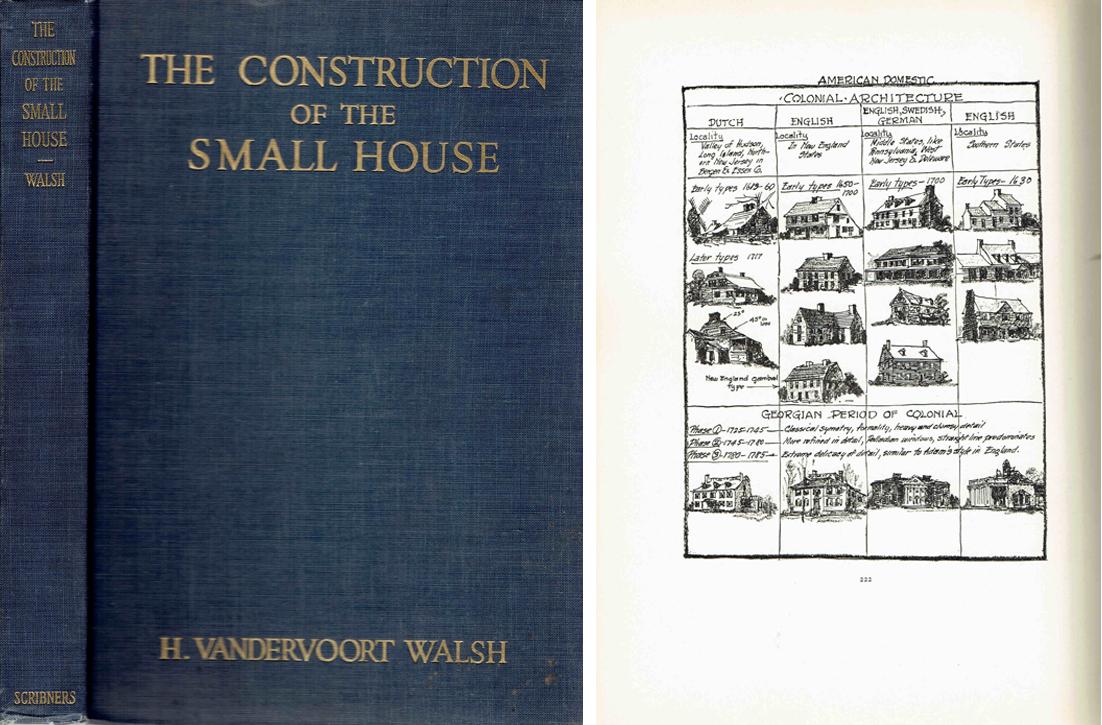 [American]. Walsh, H. Vandervoort. The Construction of the Small House A Simple and Useful Source of Information on the Methods of Building Small American Homes, for Anyone Planning to Build. New York: Charles Scribner's Sons, 1923. First edition. Octavo, pp. vi, 269, illustrated w/ drawings by the author. Original Blue Cloth. Very Good, back cracked hinge.
