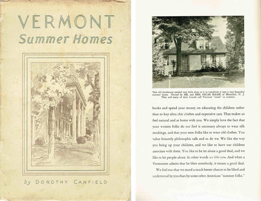 [New England]. Canfield, Dorothy. Vermont Summer Homes. Montpelier, VT: Vermont Bureau of Publicity, 1932. First edition. Small quarto, pp. 32, illustrated with b/w photographs. Staplebound Wraps. Very Good.