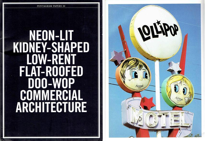 [Americana]. van Meter, Jonathan. Neon-Lit Kidney-Shaped Low-Rent Flat-Roofed Doo-Wop Commercial Architecture or, Learning from Wildwood, New Jersey. New York: Pentagram Design, 2001. First edition. Octavo, pp 36; 8 pages of text plus color photographs. Staplebound Wraps with Dust Jacket. As New.