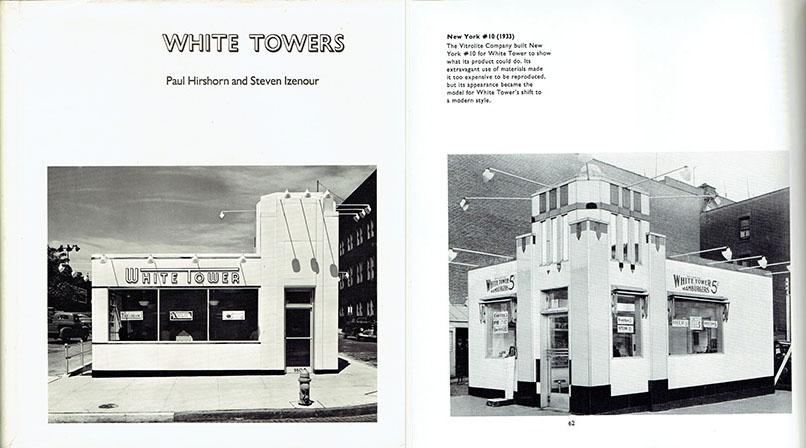 [Architectural History]. Hirshorn, Paul and Steven Izenour. White Towers. Cambridge, MA: MIT Press, 1979. First edition. Small quarto, pp. 190, indexed, illustrated with b/w photographs. Cloth over Boards. Very Good in Very Good DJ.