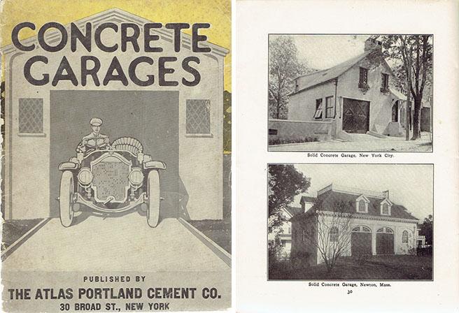 With the advent of the automobile, there came a demand for a new class of building: the private garage. The necessary storage of oils, gasoline, and other combustible materials, makes the garage a veritable firetrap, unless a fireproof building is erected. Brick work and masonry were expensive, and concrete turned out to be the cheapest satisfactory fireproof building material. This pamphlet illustrated garages around the country, and explained how to construct them. A wonderful period piece, and scarce; currently the only copy available. (23307) $100.00