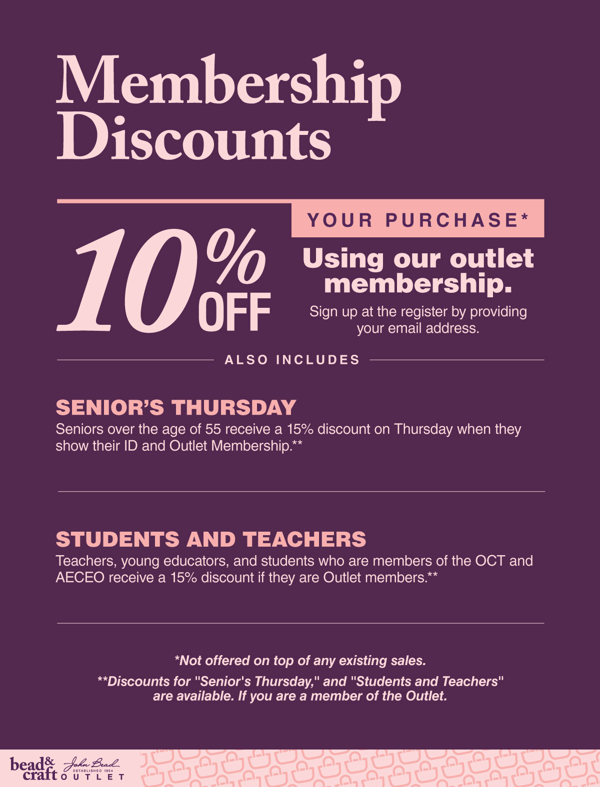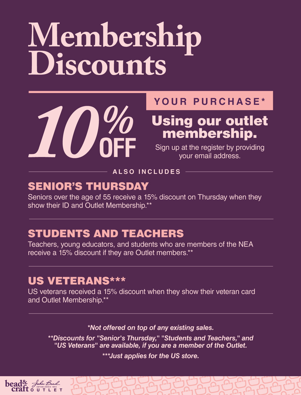 The following items are already being sold at their lowest price and are never included in extra store-wide sales promotions; Feathers**, foam sheets, felt, glitter jars, bead looms, gift certificates, gimp, glue, glue guns, leather hides, and treasure jars.